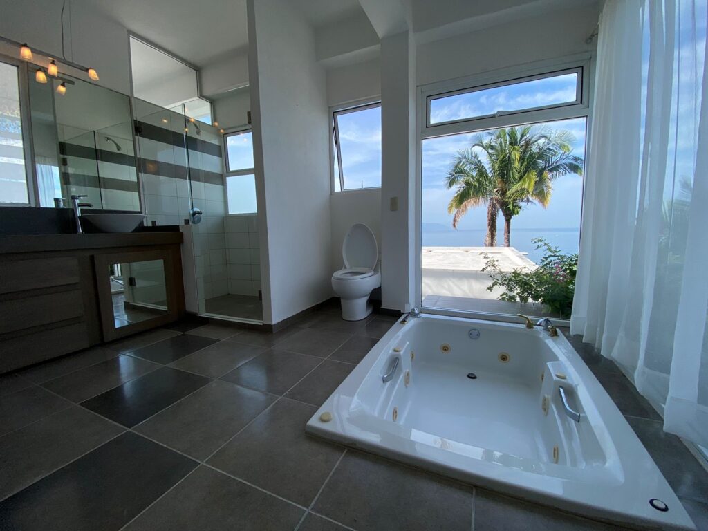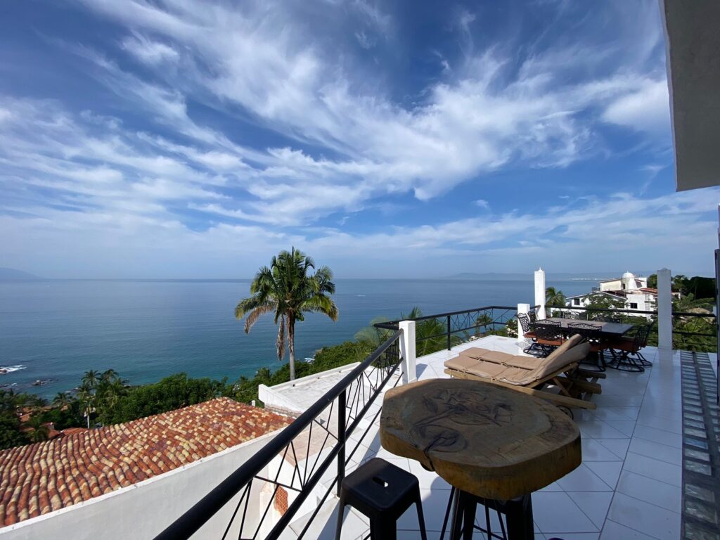 | Utilities not included Beautiful 3-bedroom, 3-bath home with luxury finishes, amazing ocean view, and private jacuzzi Unique design and great location in one of Puerto Vallarta’s most exclusive areas Neighborhood Conchas Chinas Puerto Vallarta is one of the city’s most beautiful neighborhoods, known for its golden-sand beaches, turquoise waters, and luxury hillside villas overlooking Banderas Bay.
